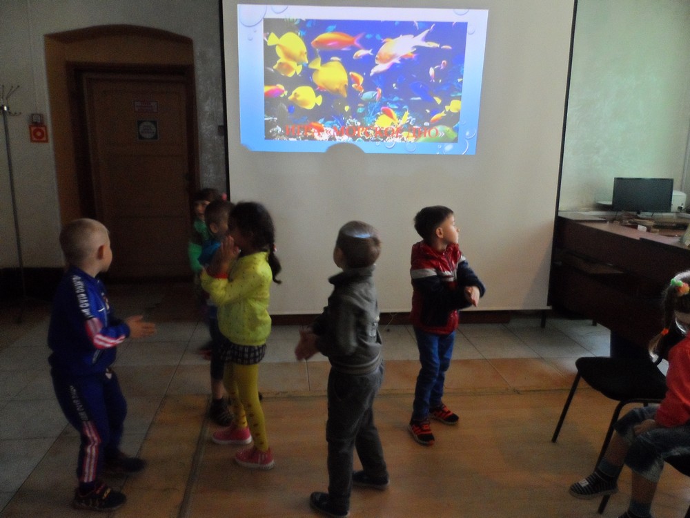 Заведующая межпоселенческой детской библиотекой С.В. Шалашова и библиотекарь Г.А. Корнилова 22 сентября 2016 года провели для воспитанников старшей группы мероприятие «Круиз на морском дне».