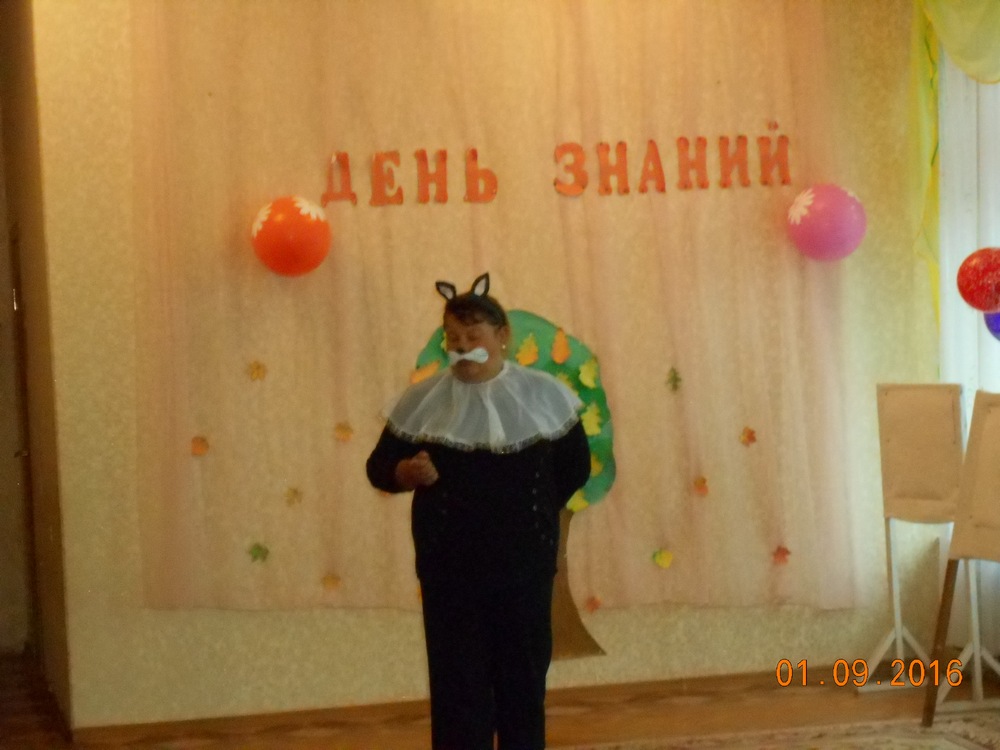 По традиции 1 сентября в детском саду прошел праздник, посвященный Дню знаний. Праздник прошел весело и интересно. Главный герой мероприятия Кот- Учёный (воспитатель Карпенко А.Н.) озадачил детей увлекательными заданиями, например «Нарисуй животное с завязанными глазами» и развеселил игрой «Рыбачек и рыбки».