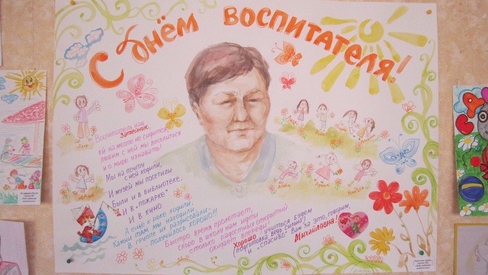 Спасибо Вам за ваш благородный труд и за то, что, несмотря на все сложности, вы помогаете малышам вырасти настоящими людьми. В день Вашего праздника от всей души желаем Вам счастья, удачи и всего того хорошего, что только можно пожелать!